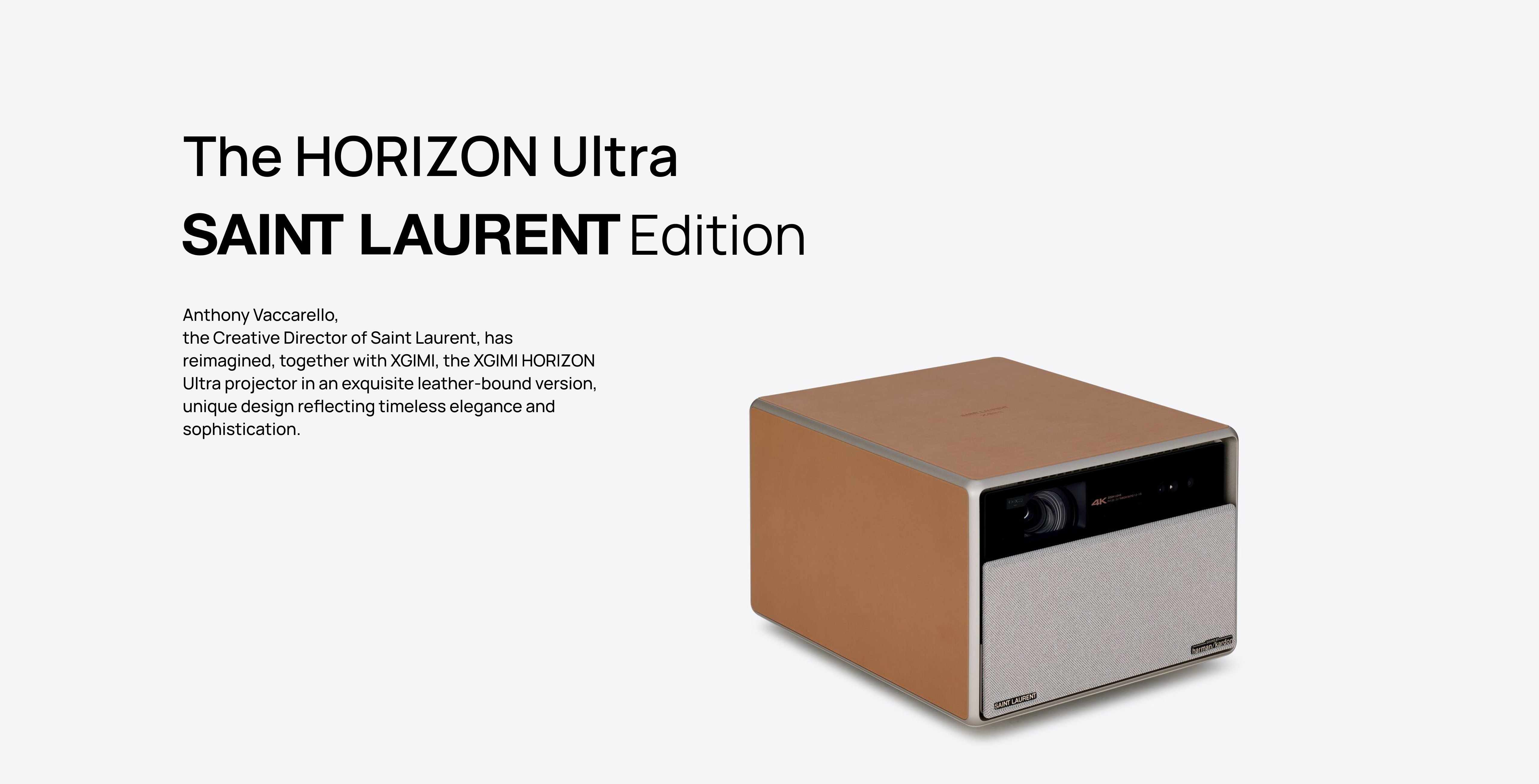 The HORIZON Ultra Saint Laurent edition projector is equipped with cutting-edge 4K technology and Dolby Vision, simulating an authentic cinema experience with unparalleled color precision and exceptional image quality.