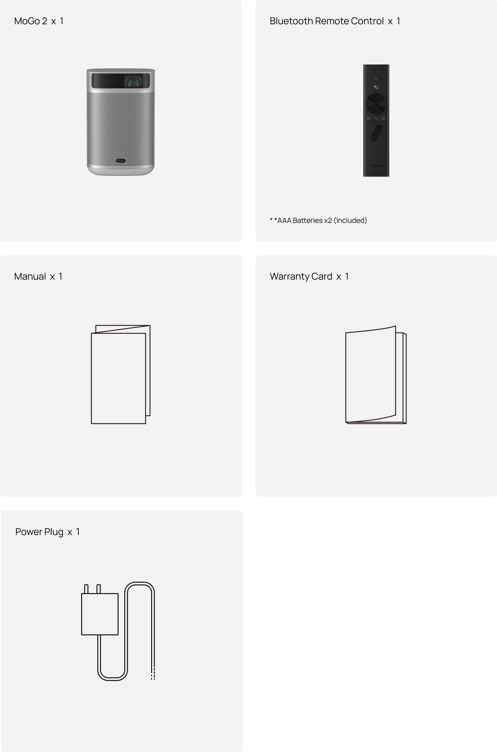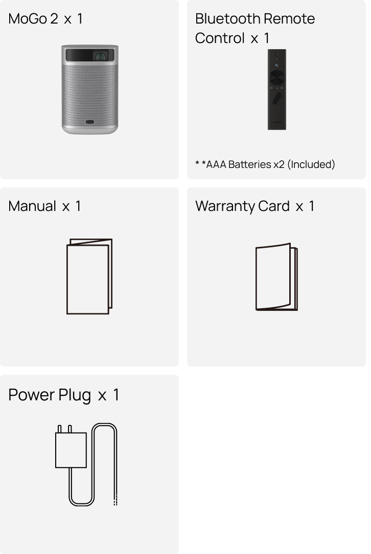 Bluetooth Remote Control × 1, AAA Batteries × 2