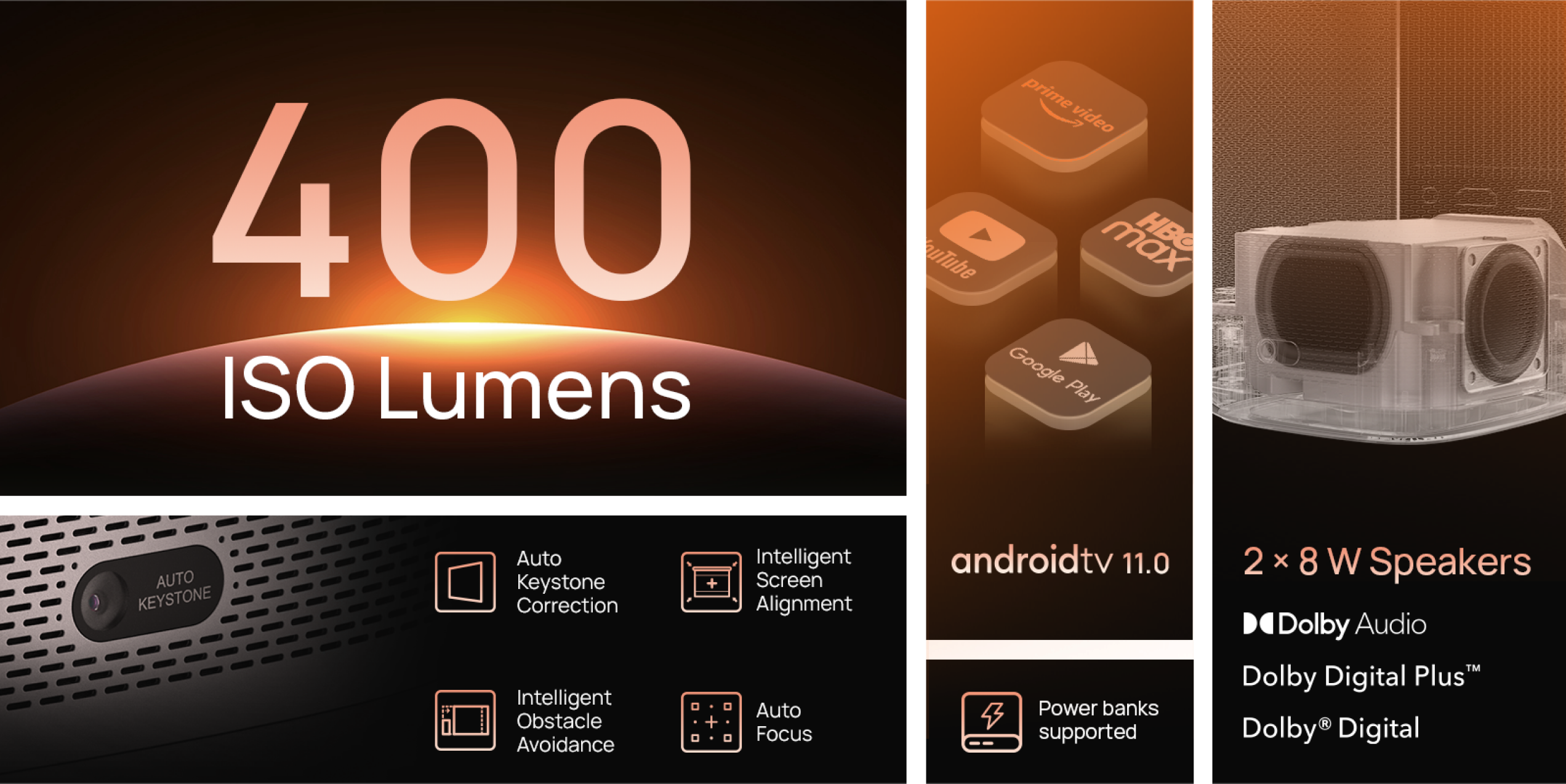 - Cinematic Visuals for Only $549: MoGo 2's 400 ISO lumens, integrated D65 color temperature standard, and 90% DCI-P3 color gamut offer a cinematic big-screen experience with bright, colorful images.